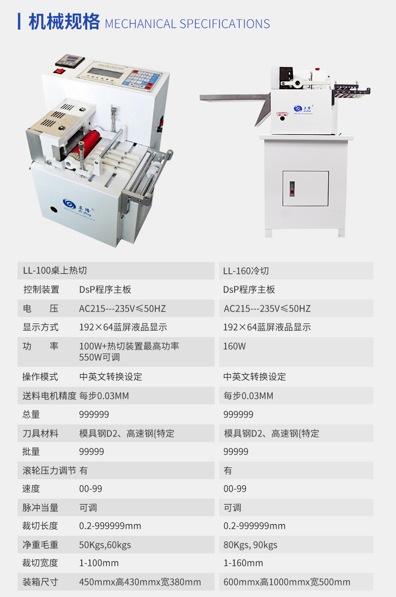 LL-100桌上全數字智能切斷機(熱切型)/(冷切型) 產(chǎn)品說(shuō)明: 本機采用全數字智能控制裝置,按鍵操作,同時(shí)可任意設定切斷長(cháng)度/數量、送料速度、且裁切精度準確、耗損少、機型設計符合人體工學(xué)原理操作簡(jiǎn)單,廣泛適用于織帶、拉鏈、...